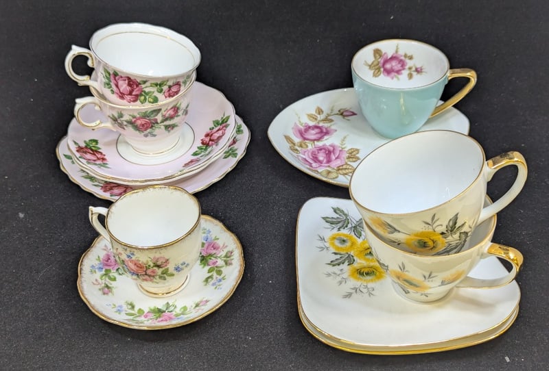 FINE/BONE CHINA TEA SETS CONSISTING OF BOTH ENGLISH AND AUSTRALIAN MADE. MAKERS INCLUDE COLOUGH, ROSLYN CHINA, WESTMINSTER AUSTRALIA.Condition: Good - Refer To Images584897+10
