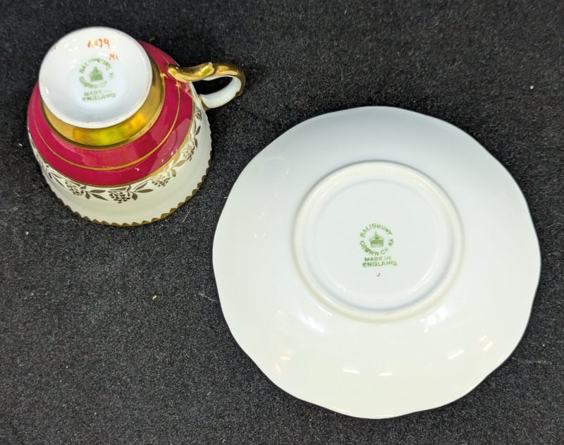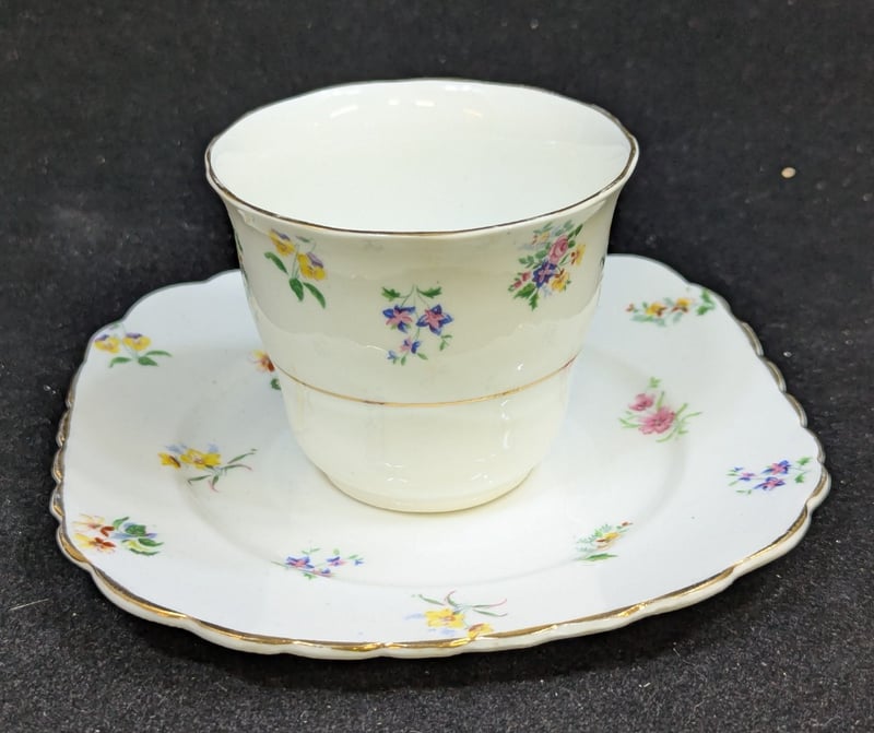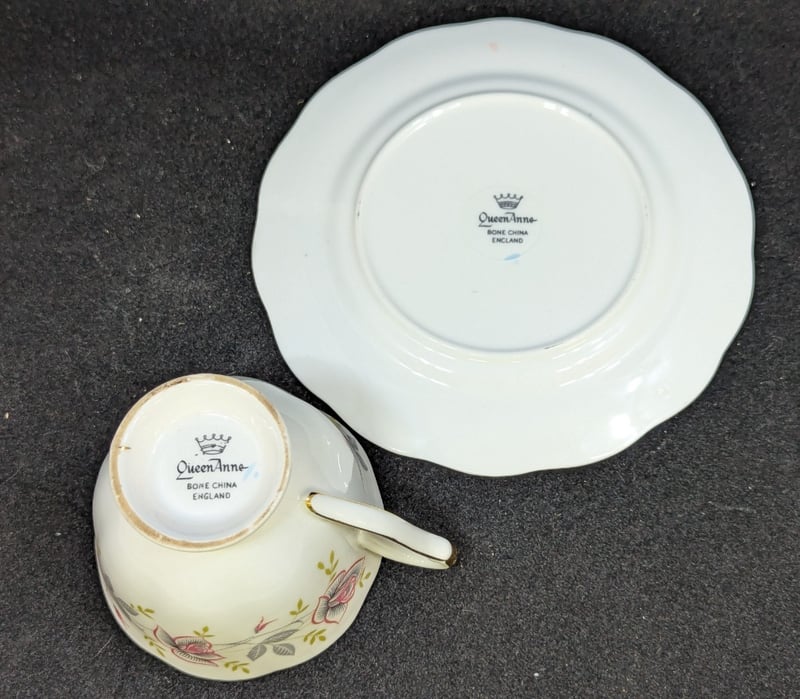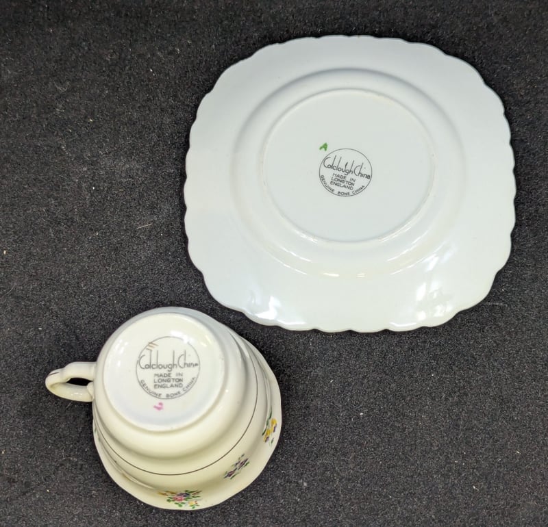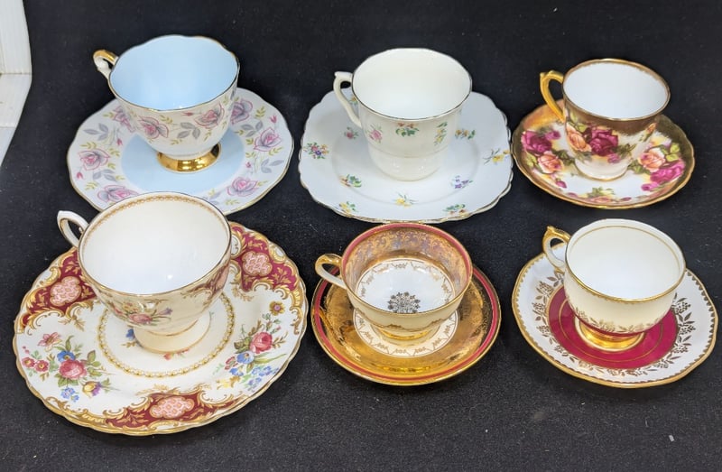 6 DEMITASSE AND TEA DUOS, MOSTLY ENGLISH MAKERS. BRANDS INCLUDE COLOUGH, ROYAL CHELSEA, SALISBURY CHINA, QUEEN ANNE AND TUSCAN CHINA.Condition: Good - Refer To Images584897+13