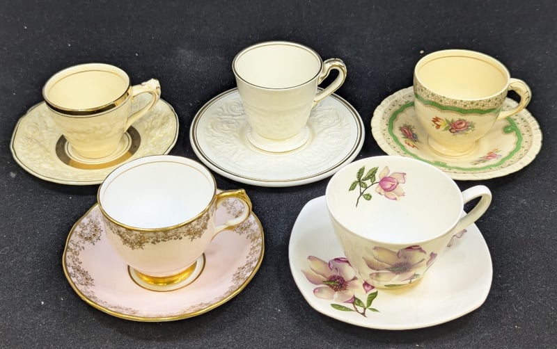 FINE/BONE CHINA DEMITASSE DUOS CONSISTING OF ENGLISH MAKERS SUCH AS WEDGEWOOD, NEW HALL, CROWN DUCAL AND OTHERS.Condition: Good - Refer To Images584897+14