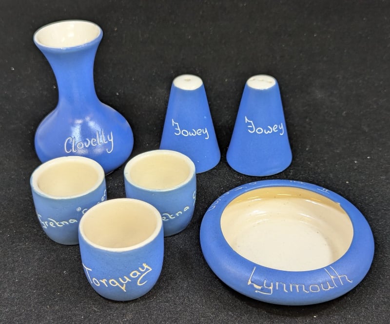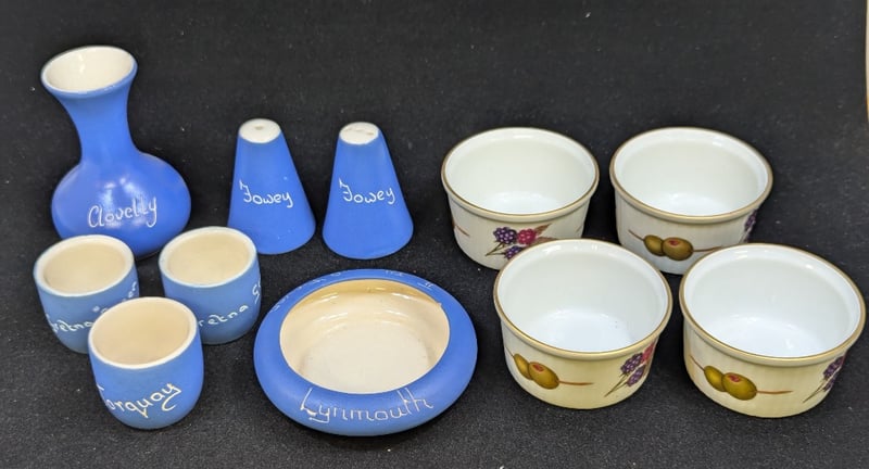 ROYAL WORCESTER 'EVESHAM' CHINA AND BLUE CERAMIC COMMEMORATIVE PIECES