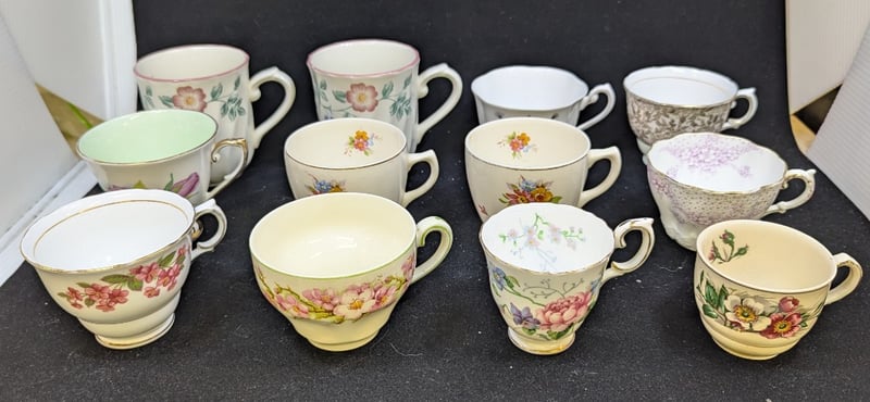 COLLECTION OF VINTAGE ENGLISH BONE CHINA TEACUPSIncludes Maker'S Marks From Cauldon (Longton), Maddock (England), And Crown (Staffordshire)Condition: Good - Refer To Images584897+23