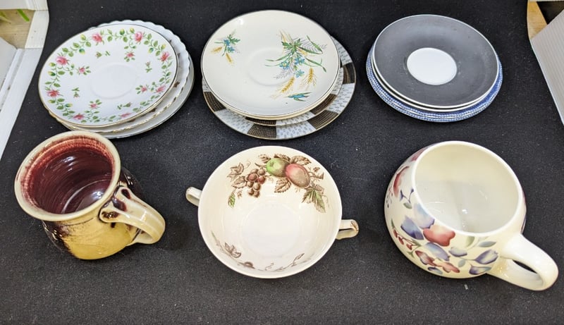 MIXED LOT ENGLISH BONE CHINA PLATES, CUPS AND SERVING WARE