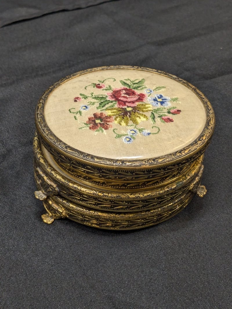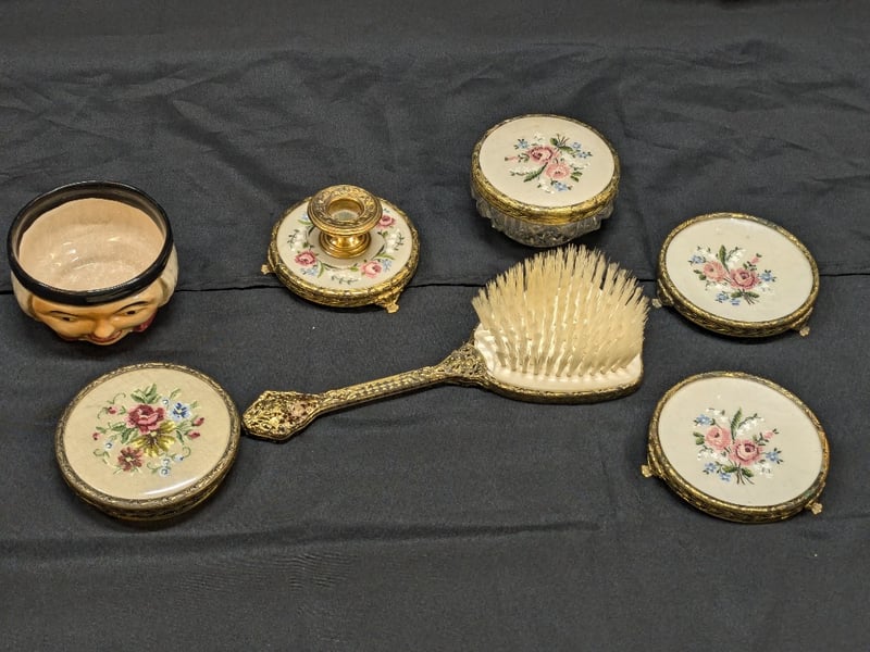 Includes Metal Trinket, Candle Holder, Glass Powder Jar, Etc.