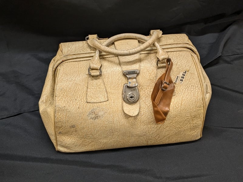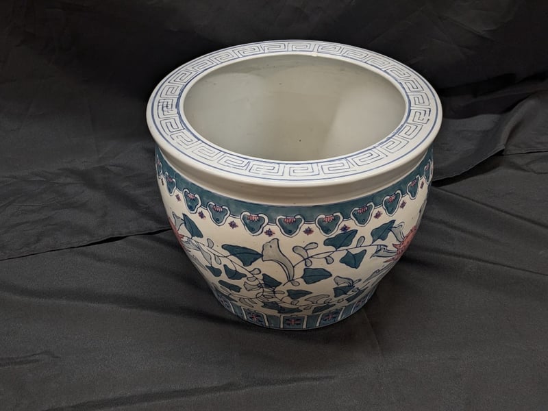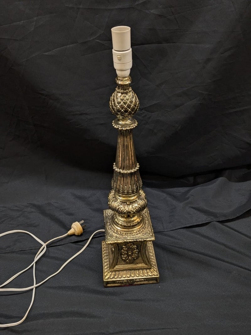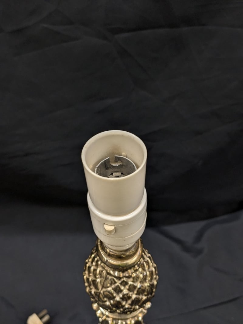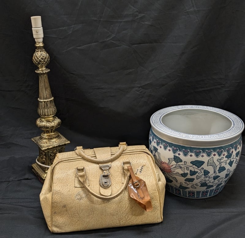 Includes Brass Table Lamp Base, Porcelain Planter, And Leather Styled Bag