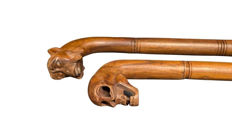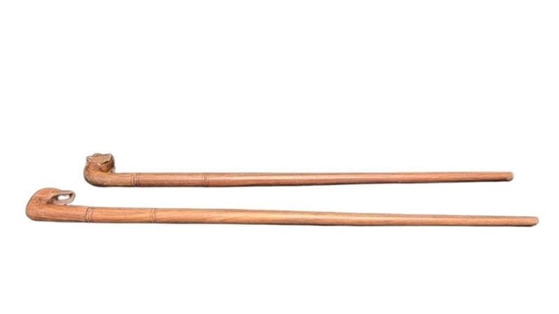 PAIR OF CARVED WOODEN WALKING STICKS