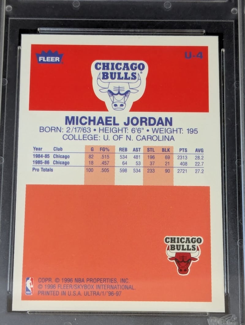 WCG GRADED 1996-97 #U-4 MICHAEL JORDAN BASKETBALL CARD, 10 GEM-MT