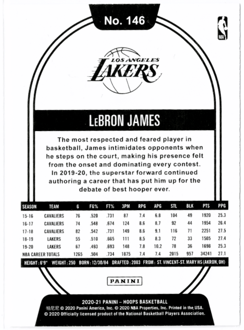 LEBRON JAMES 2020-21 PANINI HOOPS #146 GOLD PARALLEL (LOS ANGELES LAKERS / CLEVELAND CAVALIERS)
