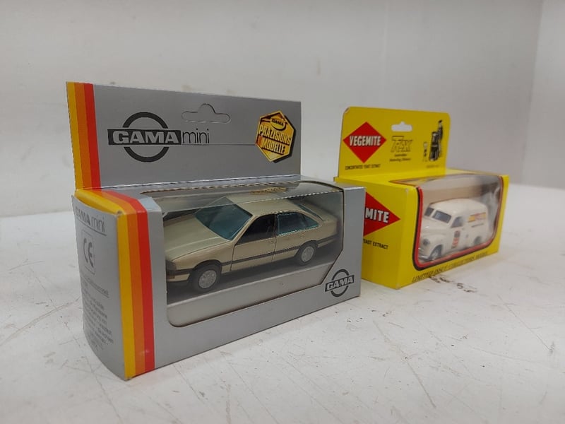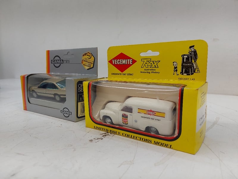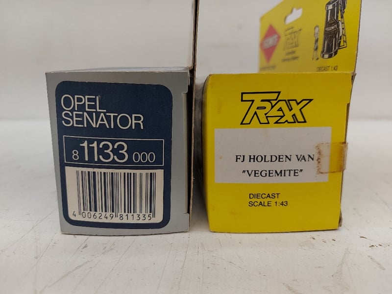 Model Cars, OPEL Senator, 8 1133 000, FJ Holden Van Vegemite, TRAX, Game Mini, In Original Box, Diecast Scale 1:43, Quantity 2