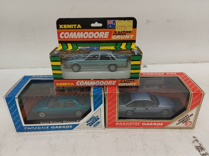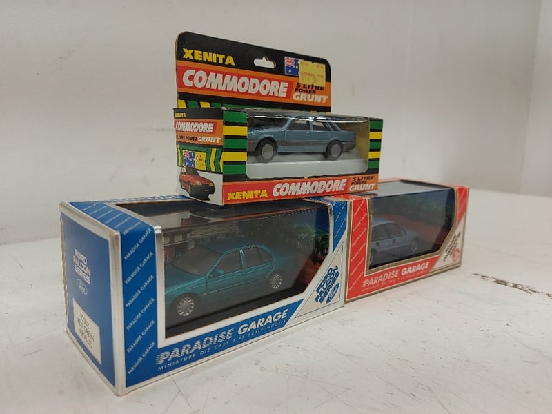 Model Cars 5 Liter Power Grunt, Ford Falcon Future EF 92202, Holden VR Commodore Acclaim, Paradise Garage, Xenita, , In Original Box, Diecast Scale 1:43, Quantity 3Sold As Lot