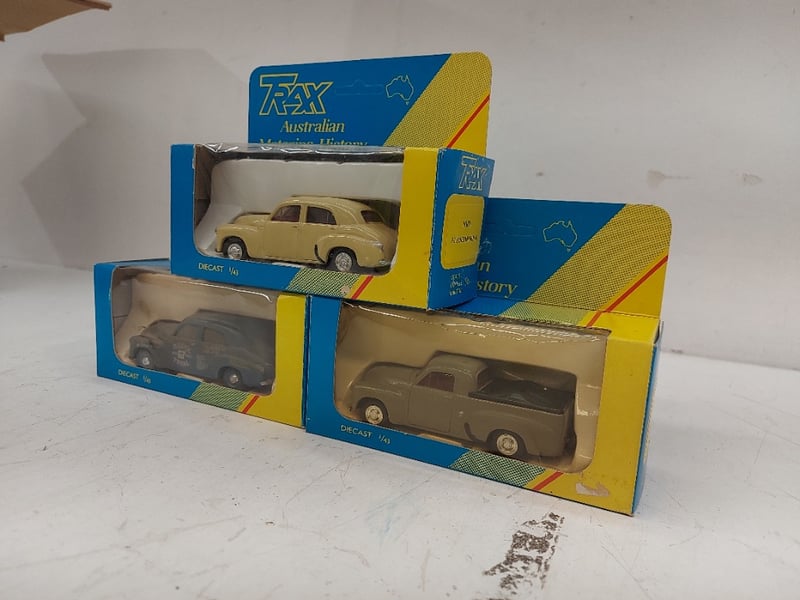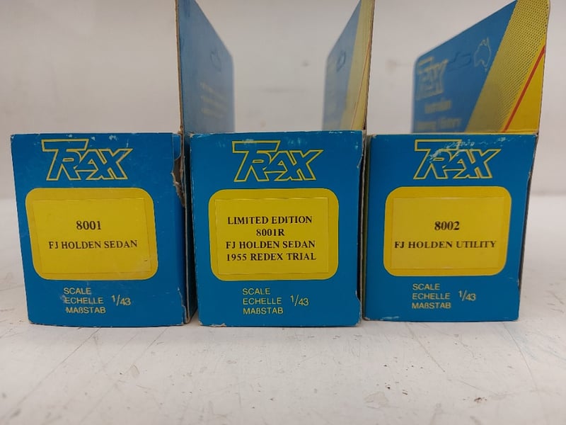 Model Cars, FJ Holden Sedan, 8001, FJ Holden Utility, 8002, Limited Edition FJ Holden Sedan 1995 Redex Trial, 8001R, , In Original Box, Diecast Scale 1:43, Quantity 3