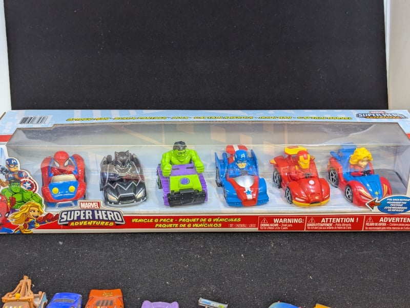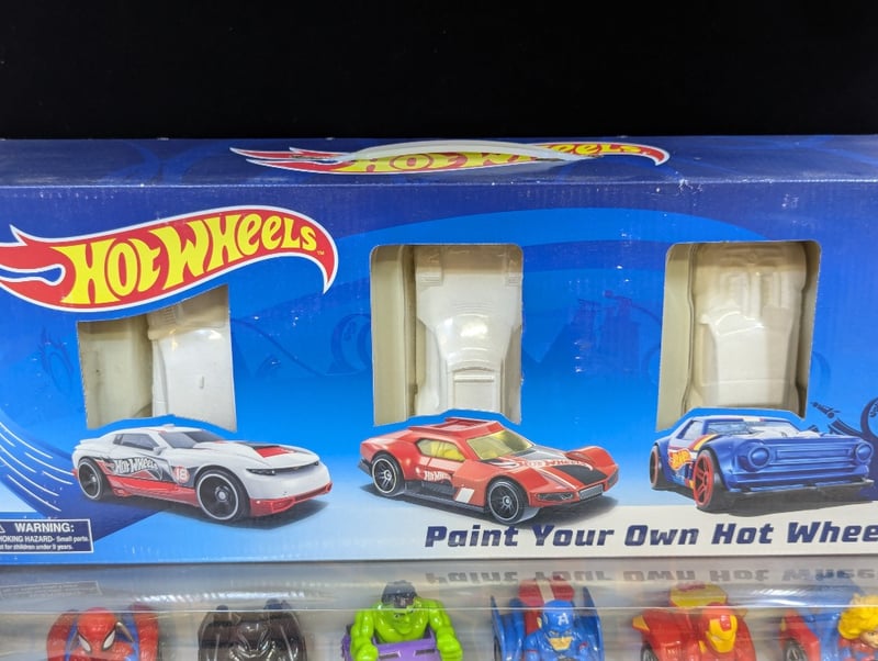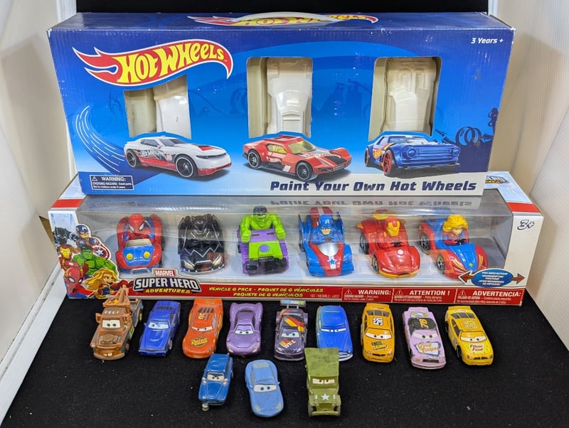 HOT WHEELS PAINT YOUR OWN CAR SET, MARVEL SUPER HERO ADVENTURES CAR SET AND COLLECTION OF 'CARS' CHARACTER MODELS