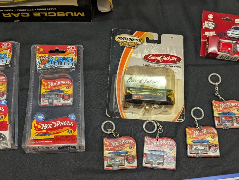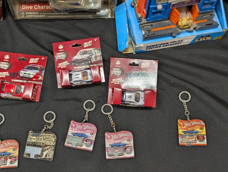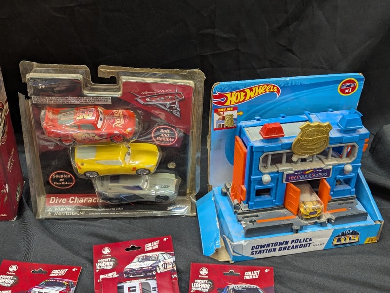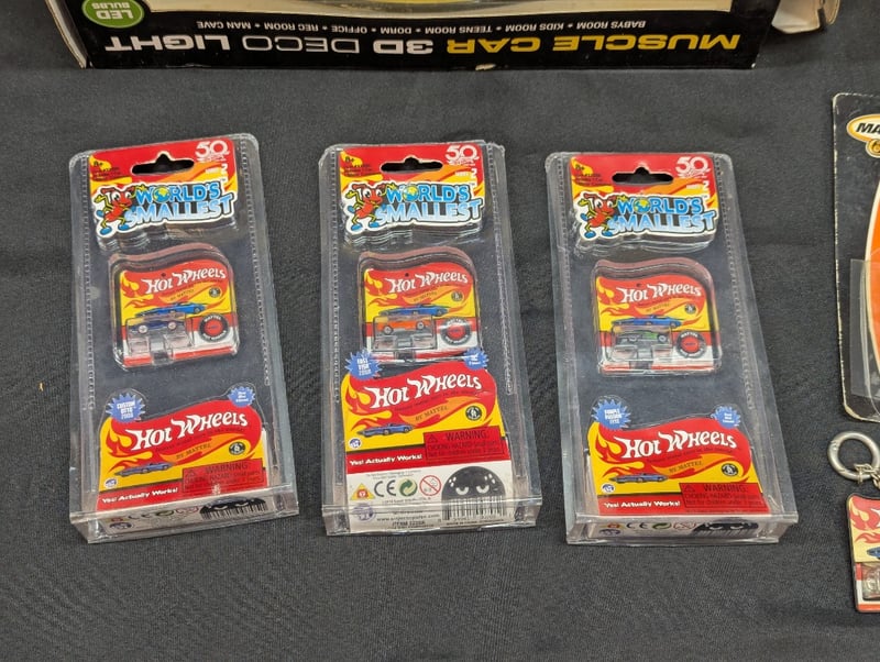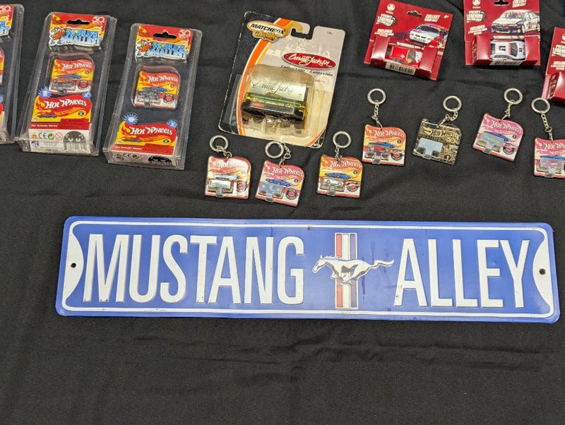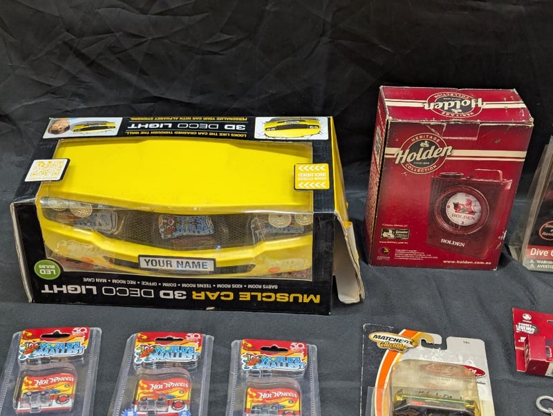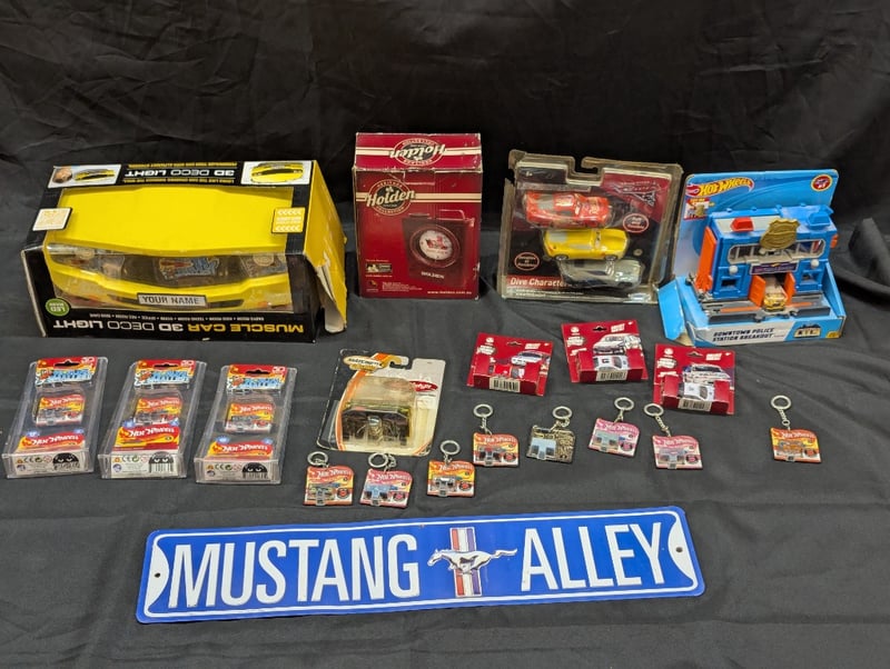COLLECTION OF AUTOMOBILE ITEMS AND COLLECTABLESItems Include Holden Clock, Pixar Cars Three Model Car Set, Hot Wheels Downtown Police Station Breakout Model, Assorted Hot Wheels Keychain Collectable Car, Muscle Car 3D Deco Light, 'Mustang Alley' Number Plate Style Wall Decoration584959+10