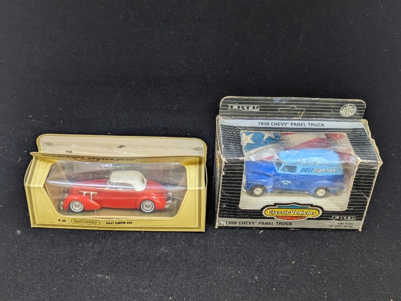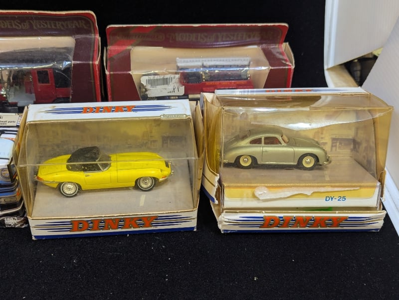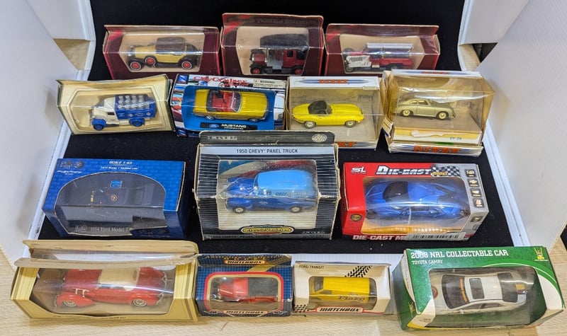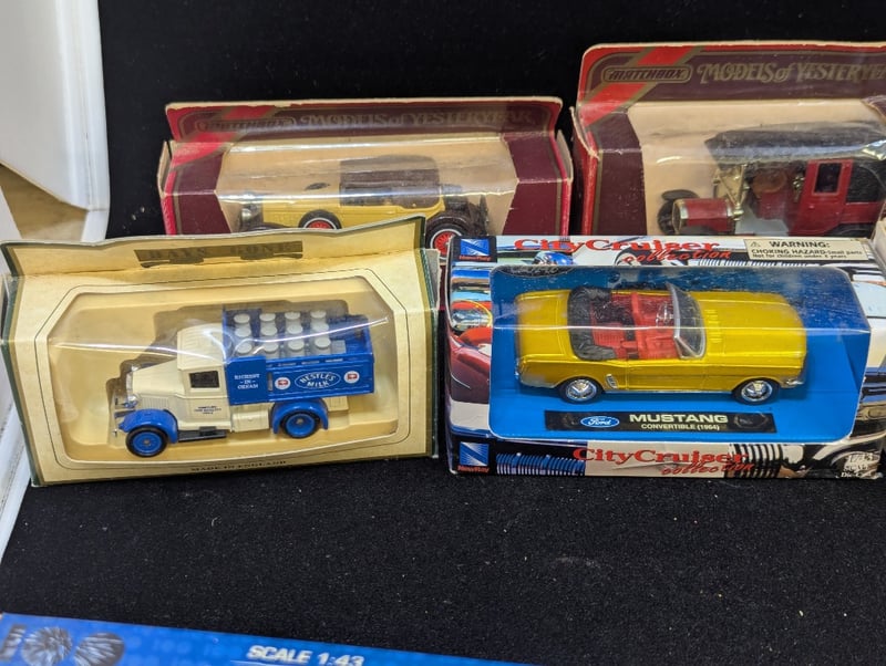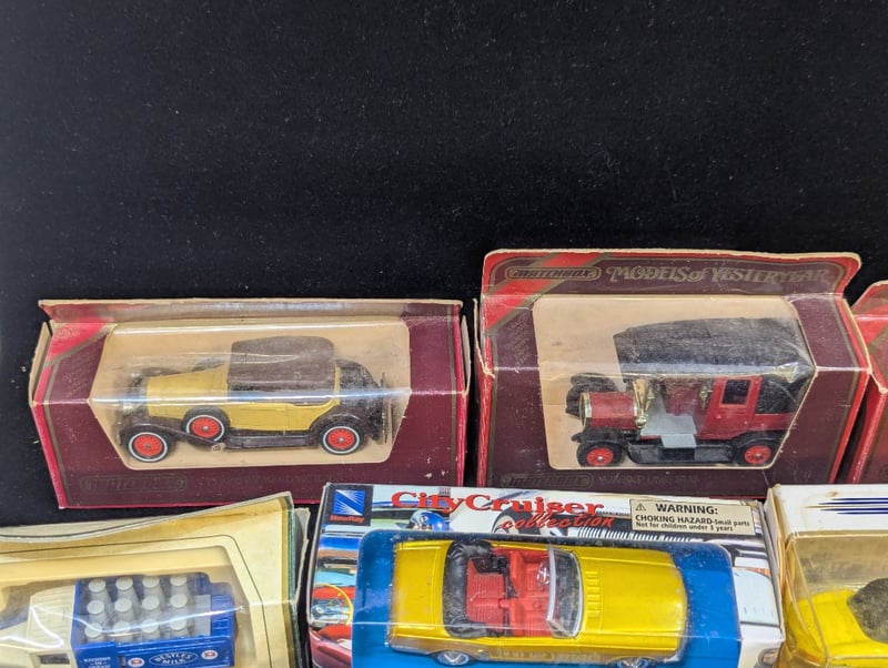Cars Include Models Of Yesteryear 1907 Unic Taxi, 1930 Packard Victoria, 1920 Rolls Royce Fire Engine, Days Gone 1930 Model A, 1964 Mustang Convertible, Dinky 1967 Jaguar E Type Mk 1 1/2, Ford Motor Company 1914 Ford Model T Touring Car, Etc