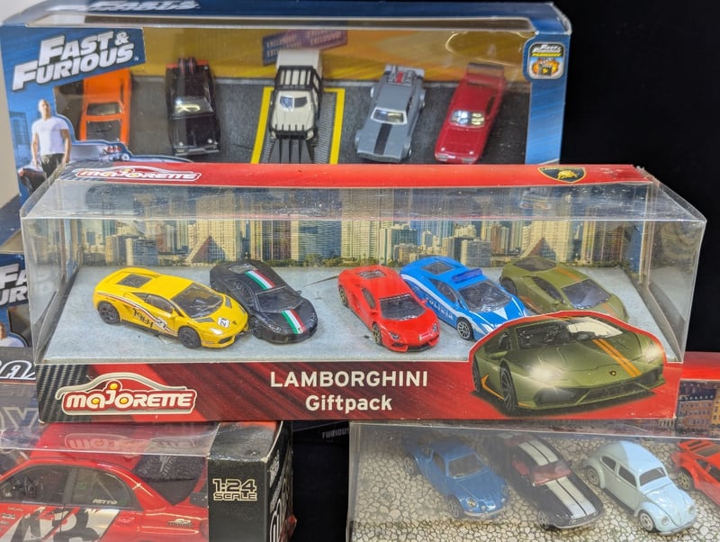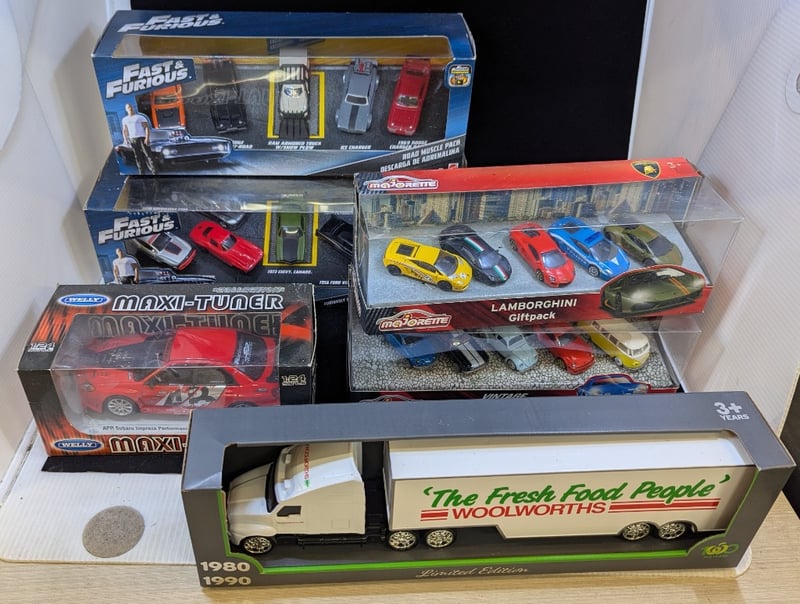 Model Car Sets Include Fast And Furious Road Muscle Pack / Furiously Fueled Pack, Majorette Lamborghini Giftpack, Majorette Vintage Giftpack, Limited Edition Woolworths Truck, Welly Maxi Tuner Apr Subaru Impreza Performance