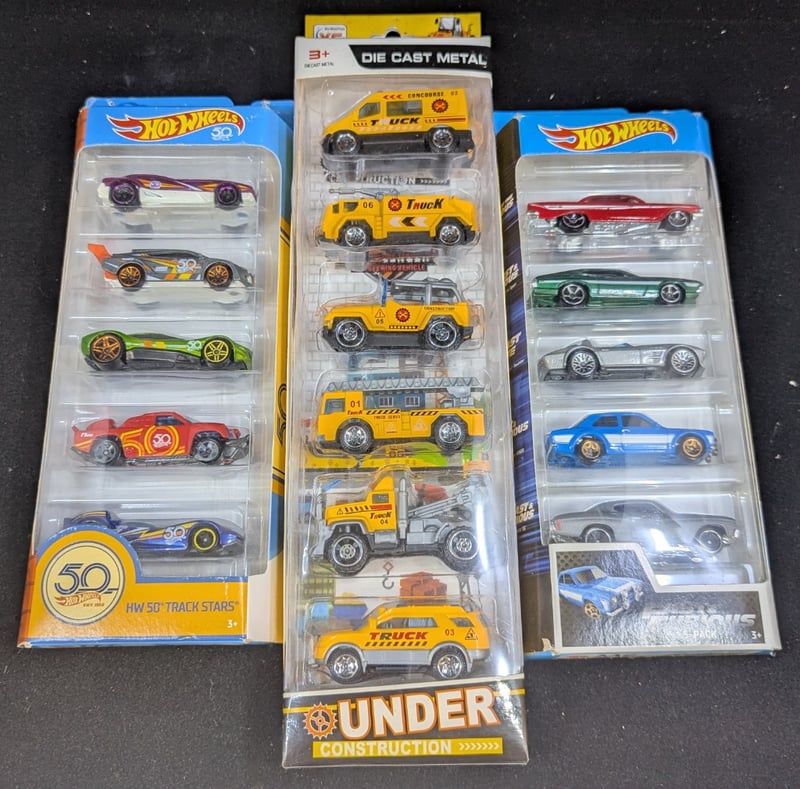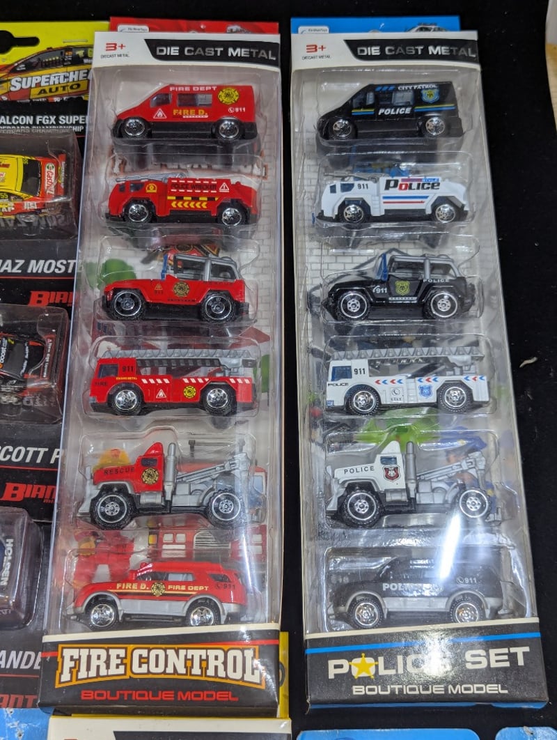 Five Car Sets Including Police, Fire Control, Fast And Furious, Under Construction, Etc