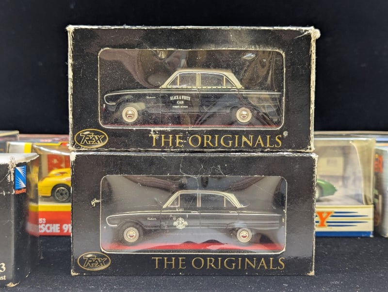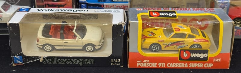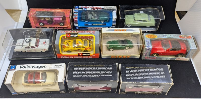 Cars Include Trax Ford Xk Falcon, Burago Porsche 911 Carrera Super Cup, 1909 Thomas Flyabout, Volkswagen 1/43 Model, Etc