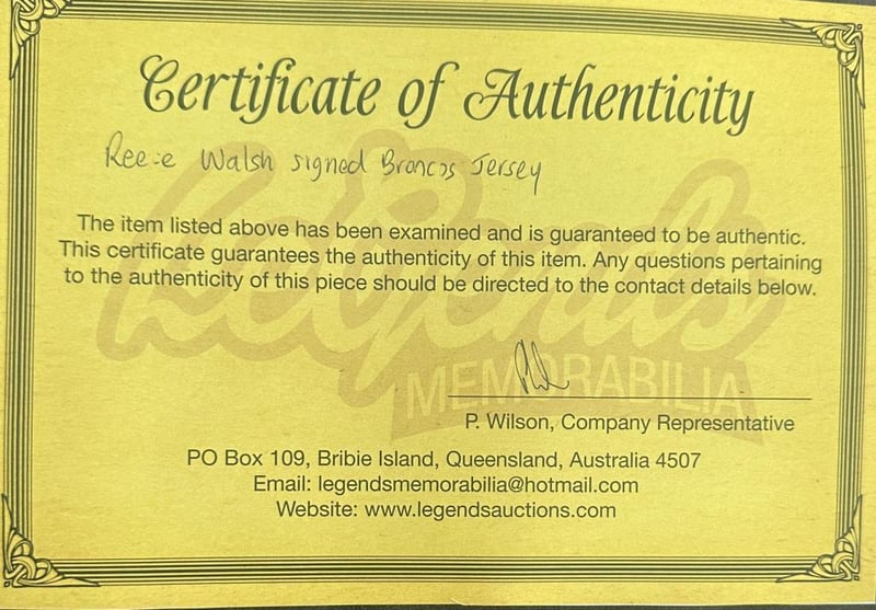Reece Walsh Personally Signed 2025 Brisbane Broncos Jersey. Walsh Was The Star Of This Years Nrl Grand Final Winning The Clive Churchill Meadal. The Jersey Is Size M. The Item Is Accompanied By A Certificate Of Authenticity.