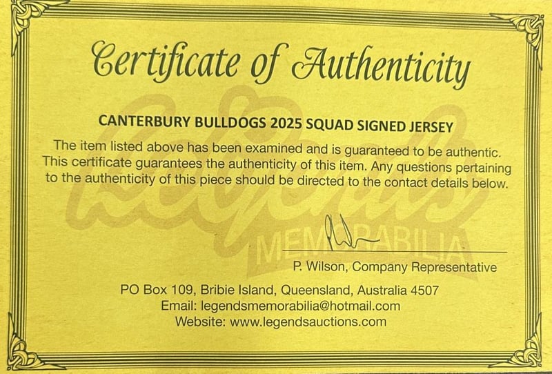 Canterbury Bulldogs 2025 Squad Signed Jersey. The Jersey Is Size M. The Item Is Accompanied By A Certificate Of Authenticity.