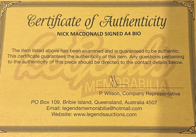 PRESIDENT KENNEDY'S NICK MACDONALD SIGNED A4 BIO