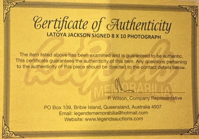 Latoya Jackson Personally Signed 8 X 10 Photo. La Toya Jackson Is An American Singer And Television Personality, The Fifth Child And Middle Daughter Of The Jackson Family. The Item Is Accompanied By A Certificate Of Authenticity.