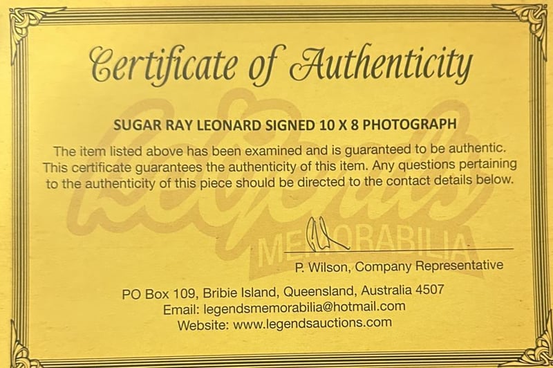 Sugar Ray Leonard Personally Signed 10 X 8 Photo. Ray Charles Leonard, Best Known As Sugar Ray Leonard, Is An American Former Professional Boxer. Often Regarded As One Of The Greatest Boxers Of All Time. The Item Is Accompanied By A Certificate Of Authenticity.