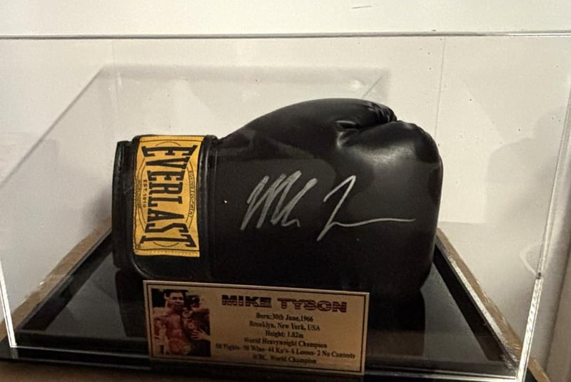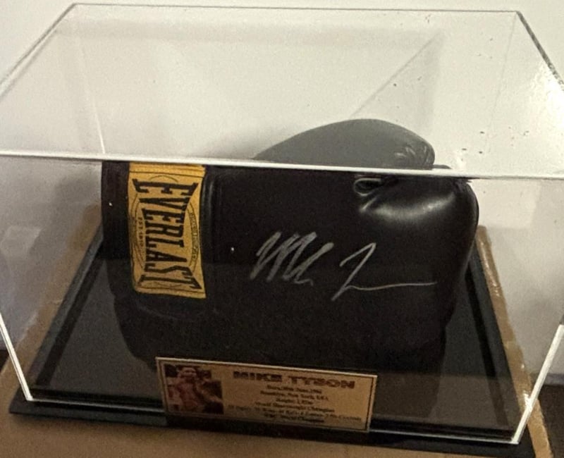 MIKE TYSON SIGNED BOXING GLOVE IN DISPLAY CASE