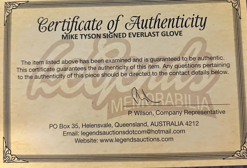Mike Tyson Personally Signed Everlast Boxing Glove. The Glove Is 12 Oz. The Glove Is Presented In An Acrylic Display Case With Statistics Plaque. The Item Is Accompanied By A Certificate Of Authenticity.