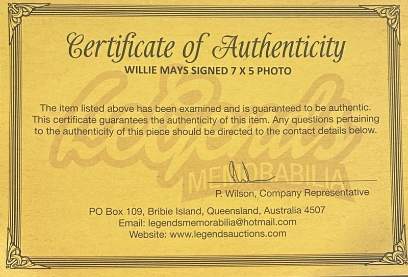 Willie Mays (D 2024) Personally Signed 10 X 8 Photo. The Baseball Legend Played 23 Mbl Seasons Breaking A Range Of Records. The Photo Is Framed. The Item Is Accompanied By A Certificate Of Authenticity.