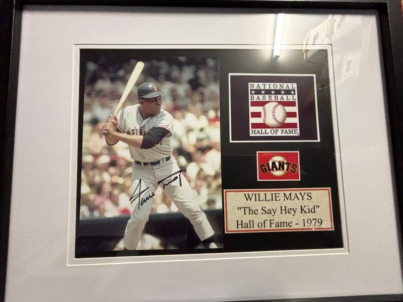 BASEBALL GREAT WILLIE MAYS SIGNED & FRAMED PIECE