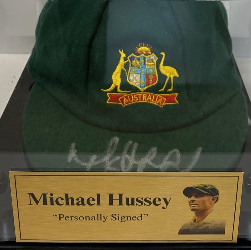 MICHAEL HUSSEY PERSONALLY SIGNED REPLICA BAGGY GREEN CAPThe Reolica Baggy Green Cap Is Presented In A Perspex Display Case. Hand Signed By Michael Hussey Using A Silver Marker Accompanied By A Certificate Of AuthenticitySize: 10 x 26 x 24.5Condition: Good - Refer To Images488344+19