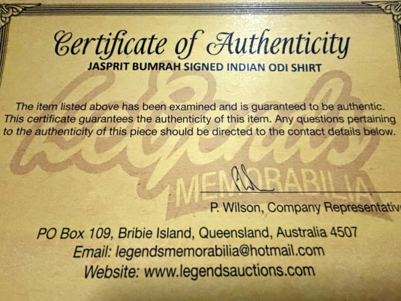 JASPRIT BUMRAH SIGNED INDIAN ODI SHIRTIndian Fast Bowling Great Jasprit Bumrah Personally Signed Indian Odi Shirt. The Shirt Is Size Xxl. Bumrah Is The Current No 1 Fast Bowler In The World. The Item Is Accompanied By A Certificate Of Authenticity.584994+5