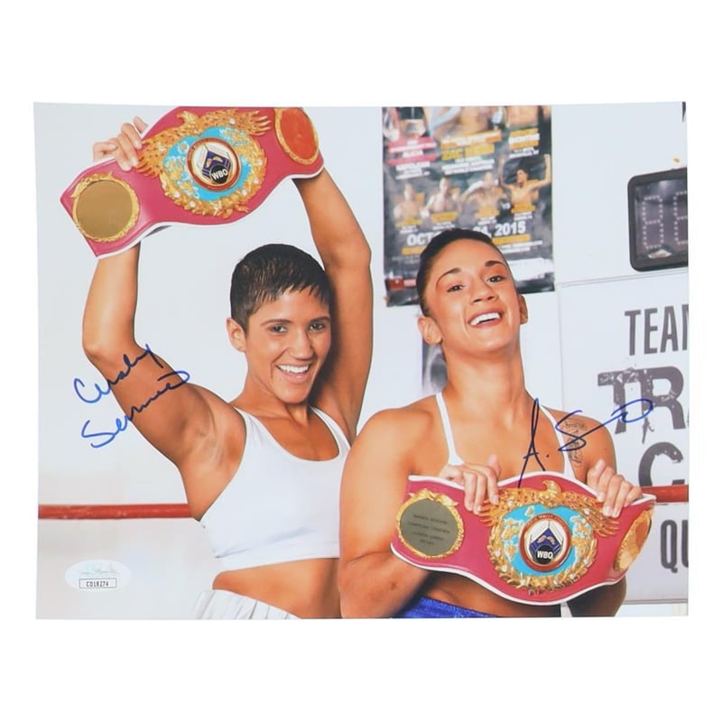 Amanda Serrano, Multiple World Champion Boxer And World Champ Sister Cindy Serrano Dual Signed 10 X 8 Photo. The Item Is Accompanied By A Certificate Of Authenticity.