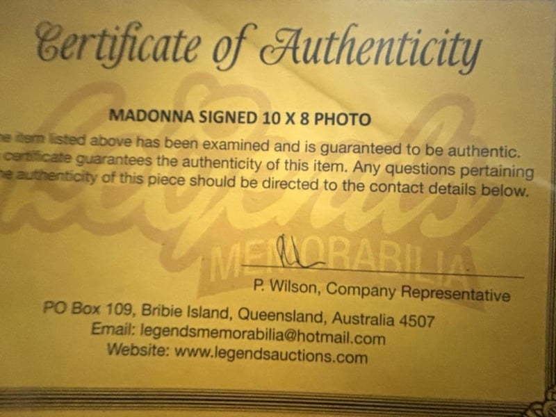 Madonna Personally Signed 8 X 10 Photo. The Item Is Accompanied By A Certificate Of Authenticity.