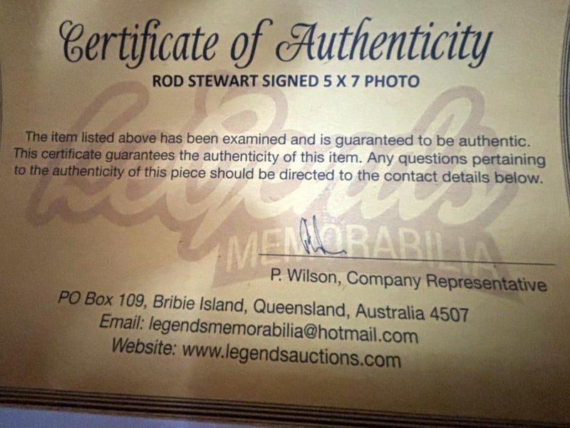 Rod Stewart Personally Signed 5 X 7 Photo. Sir Roderick David Stewart (Born 10 January 1945) Is A British Singer And Songwriter. Known For His Distinctive Raspy Singing Voice, Stewart Is Among The Best-Selling Music Artists Of All Time, Having Sold More Than 120 Million Records Worldwide.The Item Is Accompanied By A Certificate Of Authenticity.