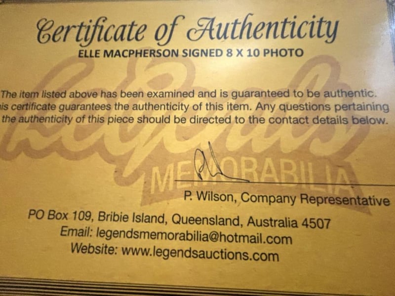 Elle Macpherson Personally Signed 8 X 10 Photo. The Item Is Accompanied By A Certificate Of Authenticity.