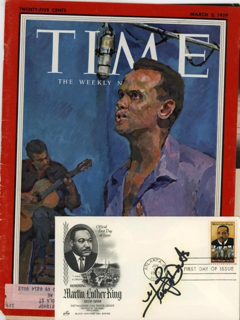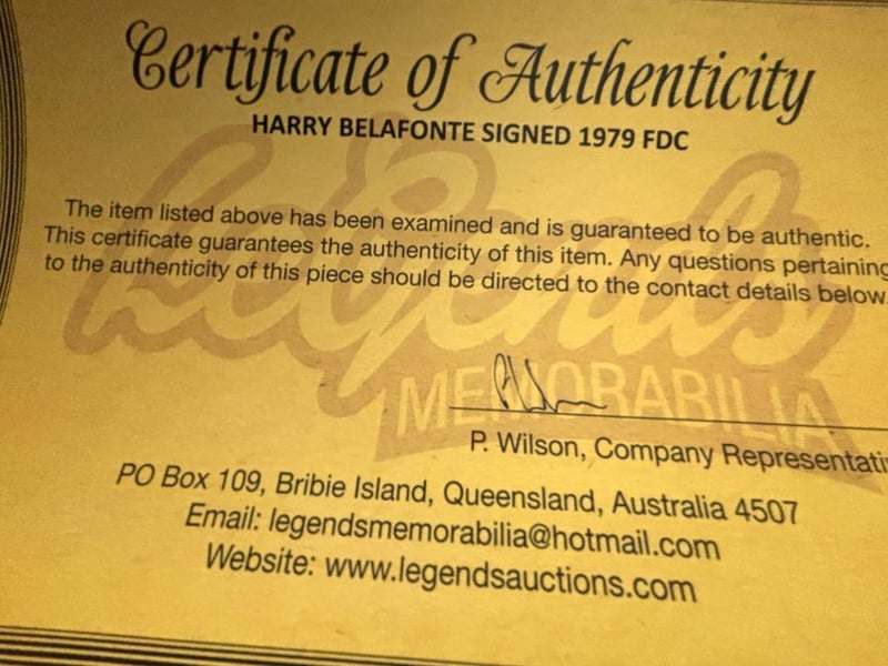 Harry Belafonte (D 2023) Personally Signed 1979 First Day Cover. Belafonte Was An American Singer, Actor, And Civil Rights Activist Who Popularized Calypso Music With International Audiences In The 1950S And 1960S. Belafonte'S Career Breakthrough Album Calypso (1956) Was The First Million-Selling Lp By A Single Artist. An Unsigned Time Magazine Cover Accompanies The Fdc. The Item Is Accompanied By A Certificate Of Authenticity.