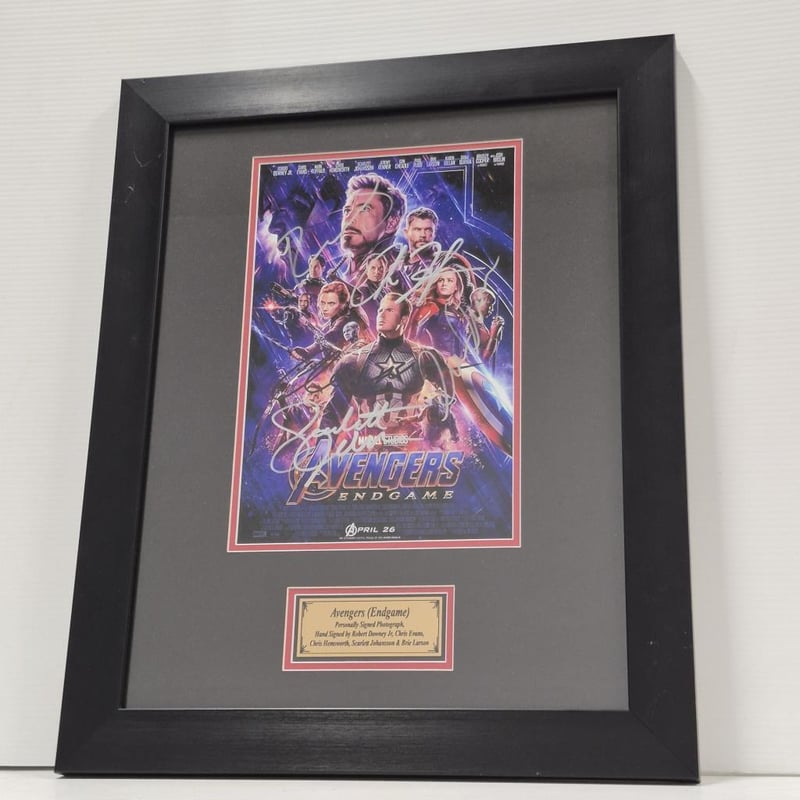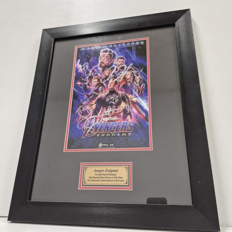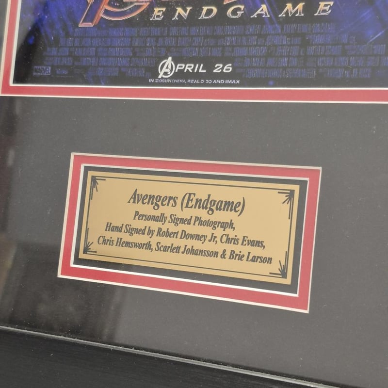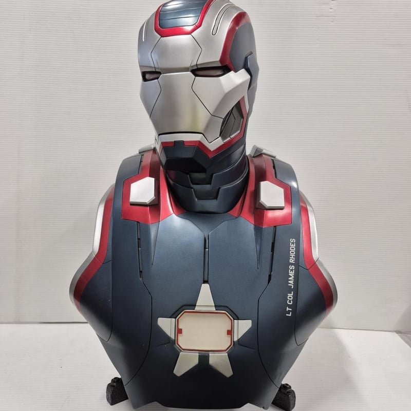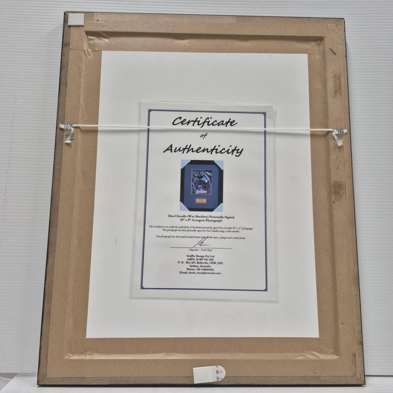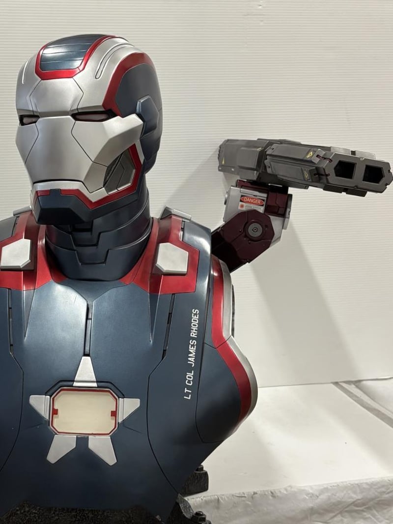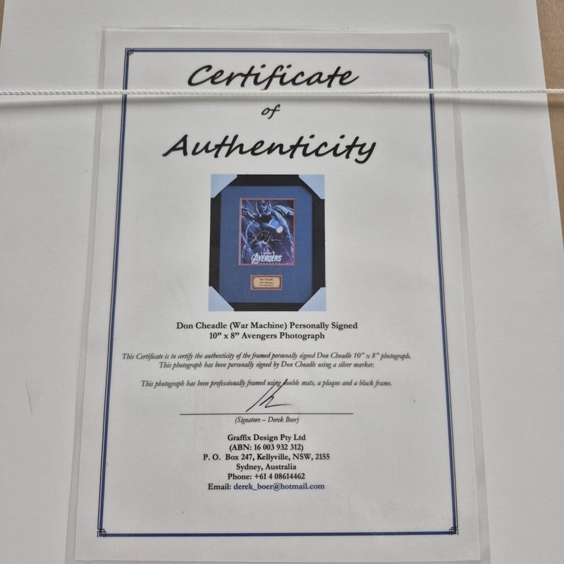 SIGNED AVENGERS (ENDGAME) PHOTOGRAPH, SIGNED DON CHEADLE (WAR MACHINE) PHOTOGRAPH AND WAR MACHINE BUST (WITH SHOULDER WEAPON) 1:1 RATIO