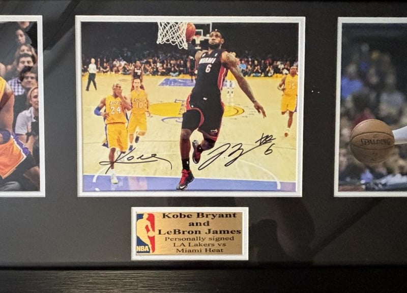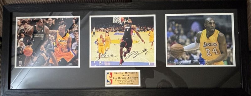 LEBRON JAMES & KOBE BRYANT DUAL SIGNED/FRAMED Lebron James And Kobe Bryant Dual Signed Lakers Vs Heat. Custom Framed, Measuring 970 X 370, This Is Ready To Hang. The Item Is Accompanied By A Certificate Of Authenticity. 584993+1