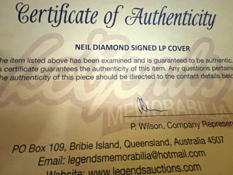 NEIL DIAMOND SIGNED & FRAMED LPNeil Diamond Personally Signed 'Got It' Lp. The Album Has Been Custom Framed, And Is Ready To Hang. Measures 650 X 550. The Item Is Accompanied By A Certificate Of Authenticity.584993+8