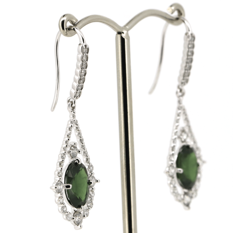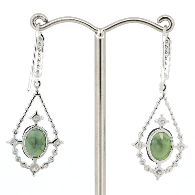 14K YELLOW GOLD, SAPPHIRE AND DIAMOND, DROP EARRINGS. THE DESIGNS FEATURE, 2 OVAL FACETED CUT, DARK GREEN, SAPPHIRES (5.02CT TSW, LIGHT-MODERATE NATURAL INCLUSIONS), 4 CLAW SET. SURROUNDING THE CENTRES IN HALOS AND DECORATING THE HOOKS ARE, 68 ROUND BRILLIANT CUT, DIAMONDS (1.07CT TDW, H COLOUR, SI-I2 CLARITY), MICRO-CLAW SET. RING SIZE M 1/2. Valuations Provided by an Independent Third-Party Professional Not Directly Associated With Lloyds Auctions at AUD $16900This valuation has been conducted by an independent third-party professional. The valuation amount is an assessment by the issuing valuer and does not reflect the auction value of the item. Any inquiries regarding the valuation should be directed to the issuing valuer (refer to contact details on the certificate), as Lloyds Auctions has no affiliation or influence over the valuation, the valuer, or the stated amount. Condition: Good - Refer Images 0645863+5060