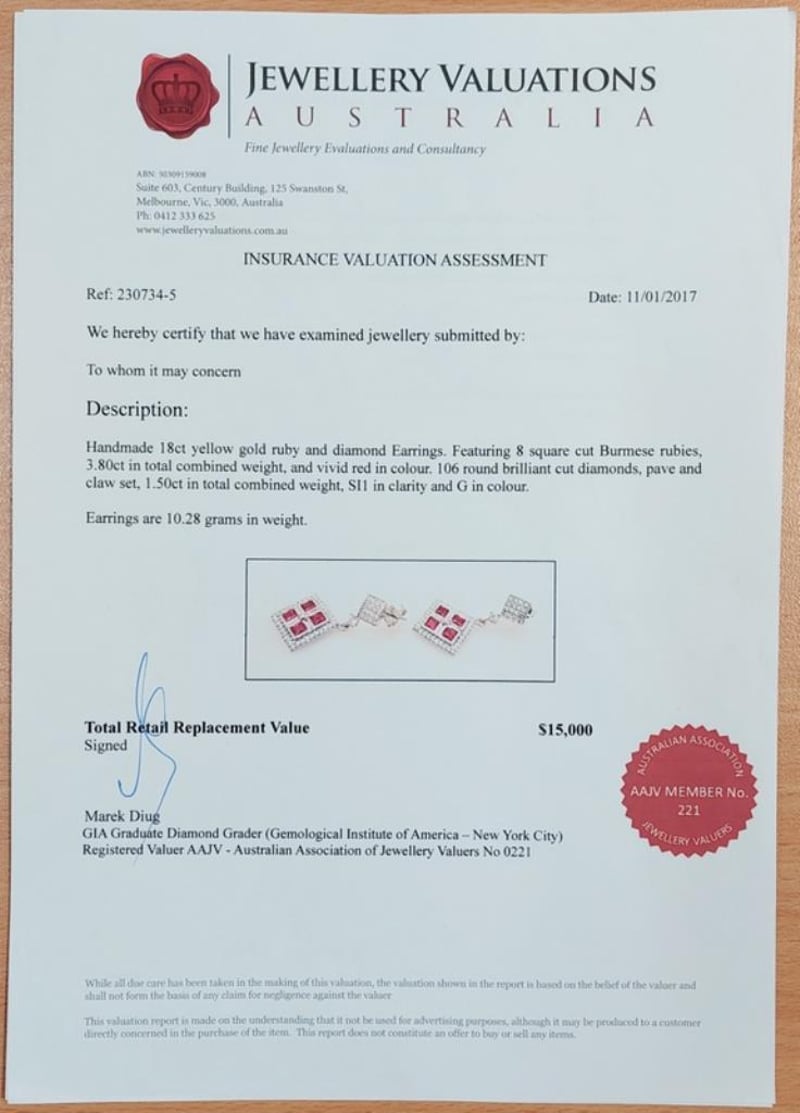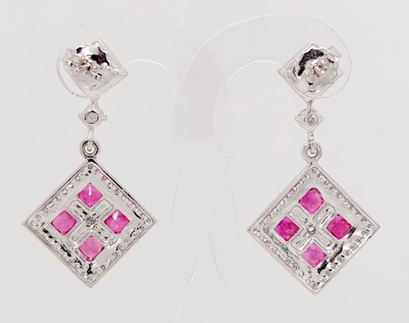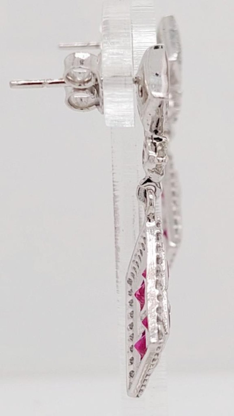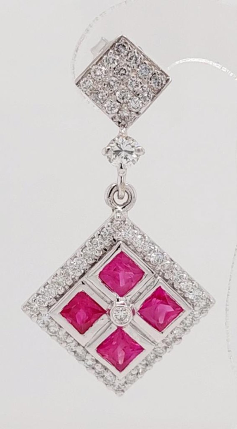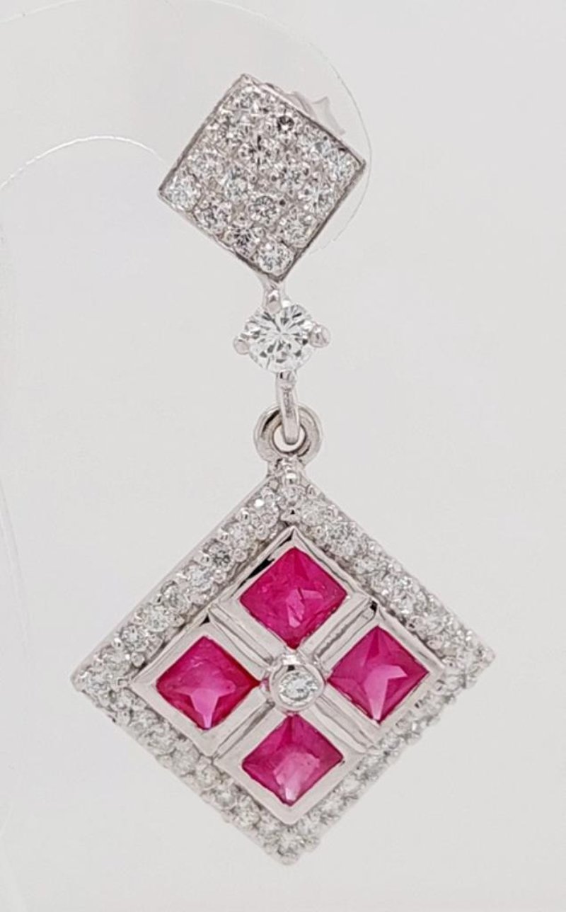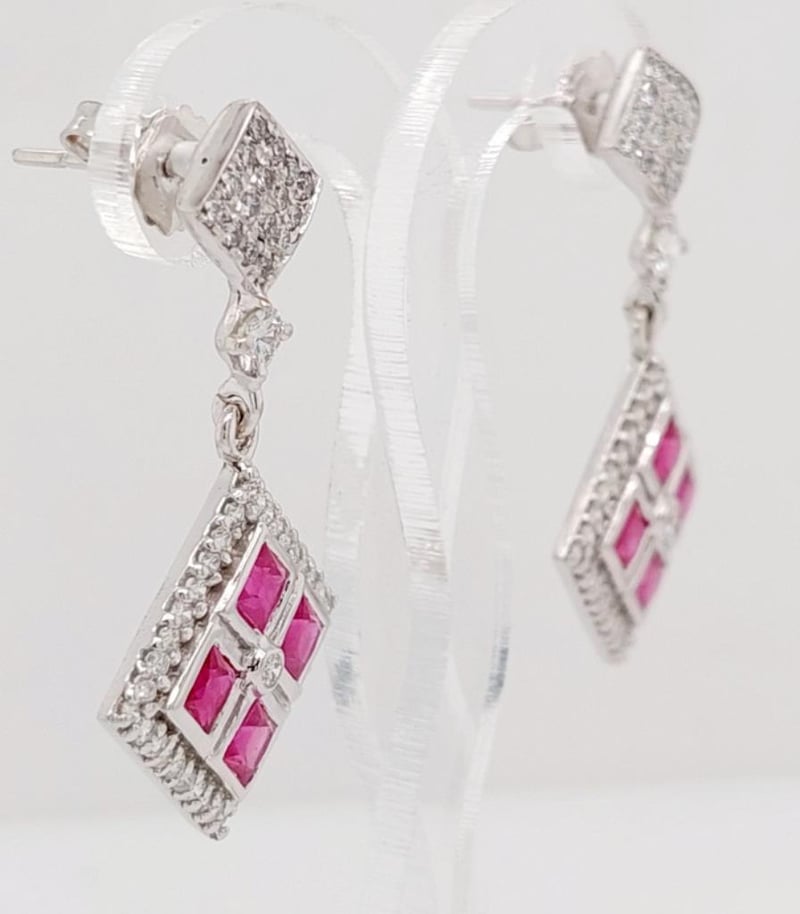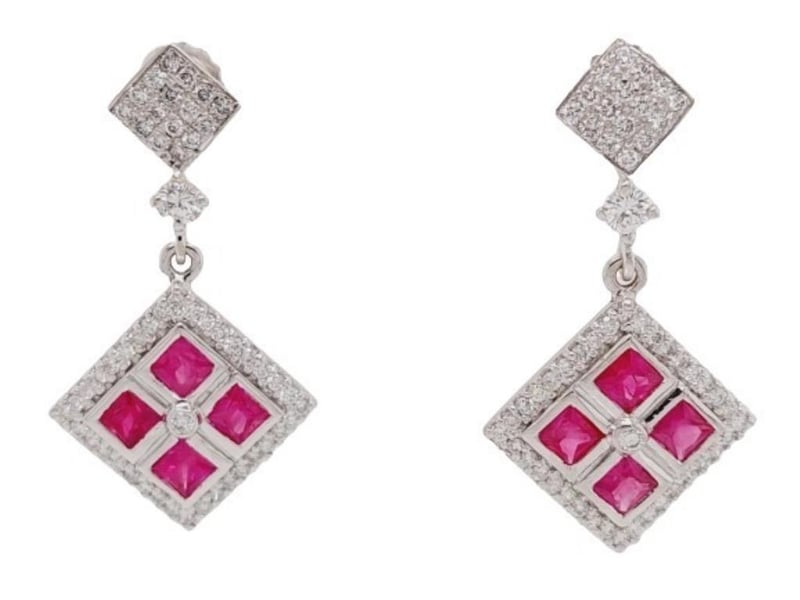 These 18Ct White Gold Earrings Feature 8 Square Cut Burmese Rubies, 3.80Ct In Total Combined Weight And Vivid Red In Colour With 106 Round Brilliant Cut Pave And Claw Set Diamonds, 1.50Ct In Total Combined Weight, Si In Clarity And G In Colour.