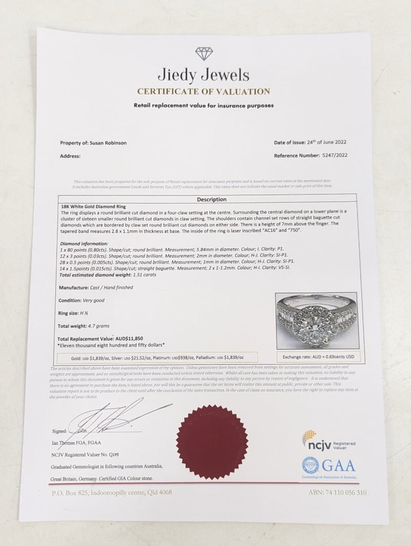Ring Features Round Brilliant Cut Diamond In Centre Four Claw Setting, 0.80Ct, 5.84Mm, Colour: I, Clarity: P1,