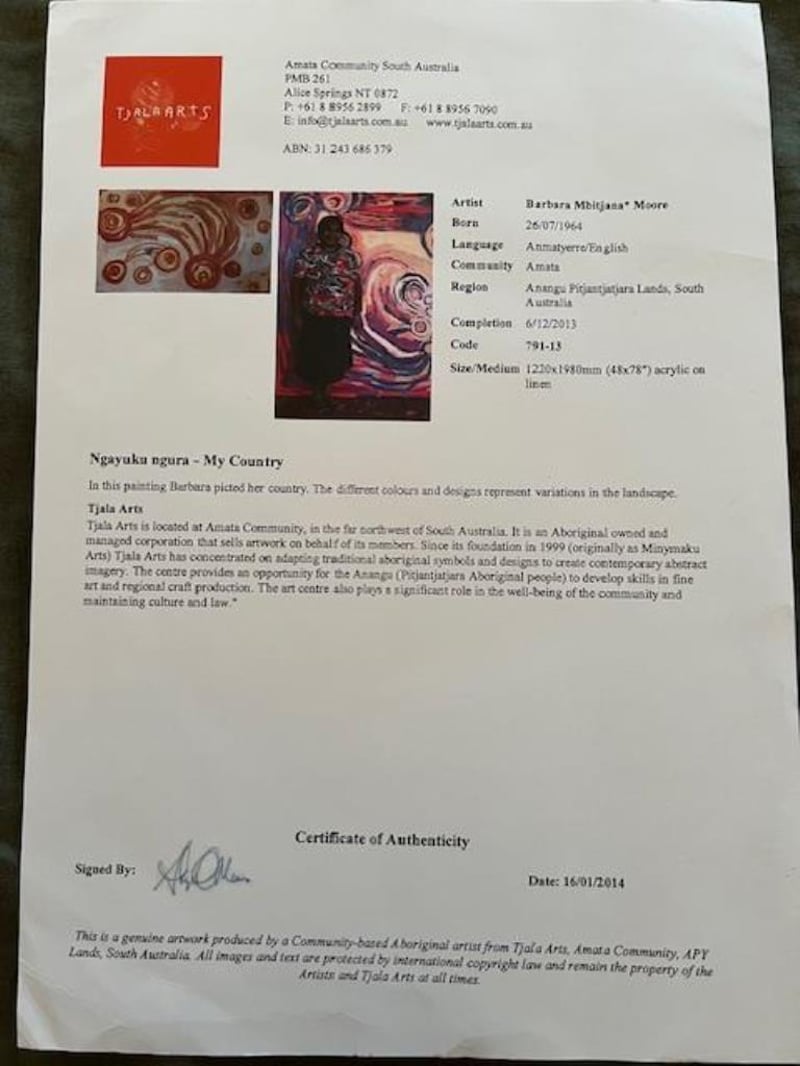 Condition: Good - Refer To Images Certificate Of Authenticity Red Dot Gallery Singapore Provenance Barbara Mbitjana Moore (B. 1964) Spent Her Early Years In Tea Tree. She Then Moved To Amata, One Of Six Main Aboriginal Communites In The Apy Lands Of South Australia.