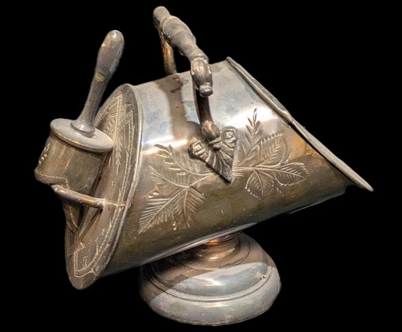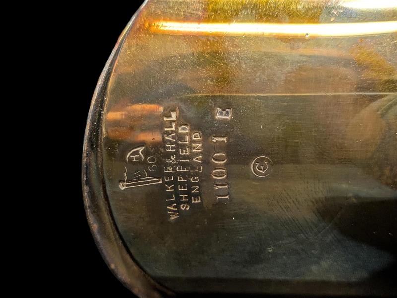 WALKER & HALL SILVERPLATE BISCUIT BARREL / CRUMB TRAY WITH SCOOP – SHEFFIELD, ENGLAND