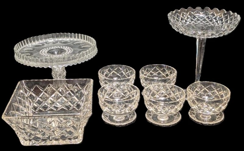 ASSORTED CUT GLASS SERVING AND DESSERTWARE SET – UNSTAMPED