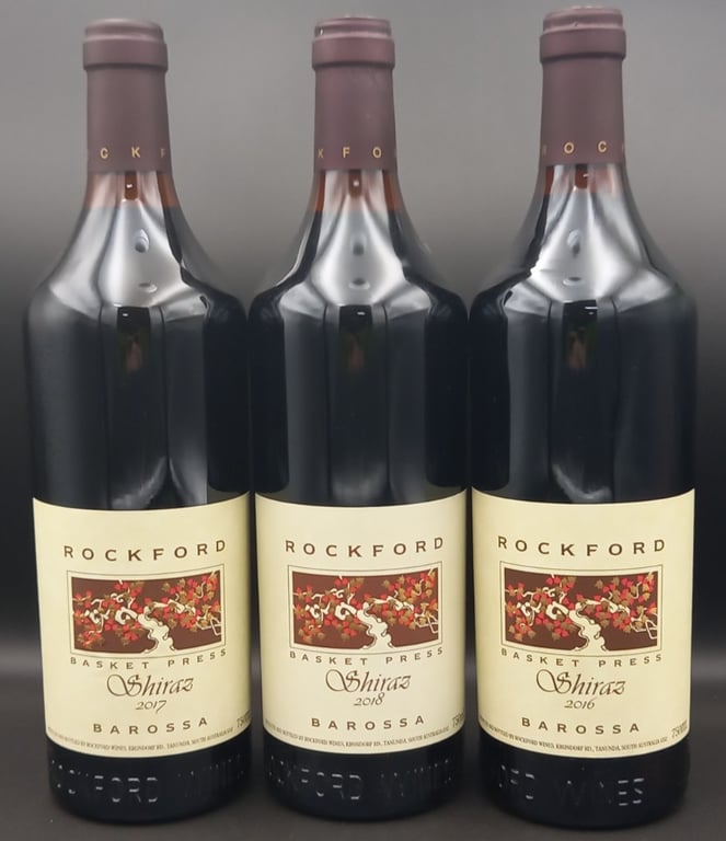 2016, 2017, 2018 Rockfords Basket Press Shiraz, Barossa 3x 750ml sealed Bottles, Sold as lot