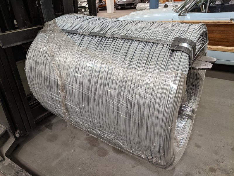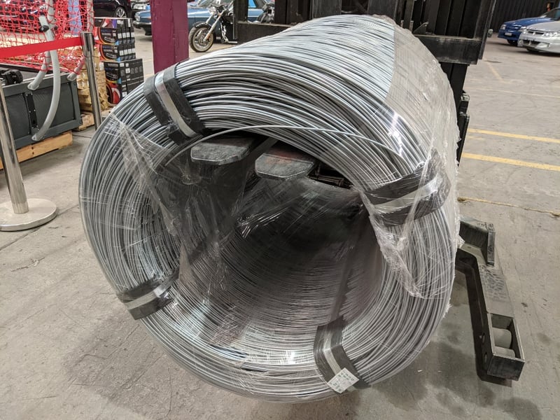 Hot dipped galvanised (50-60gsm), 4mm dia wire, ID 500mm, tensile strength 400-500MPa.