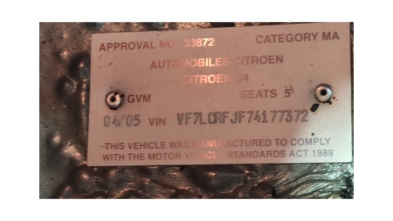 2005 Citreon C4 Year: 2005 Make: Citreon Model: C4 Odometer: 120277 Kilometres Engine: 4cyl petrol Transmission: Automatic Description: Vehicle runs and starts, flat battery, missing passenger mirror, areas of paint damage, 1 key, books. VIN: VF7LCRFJF74177372 Engine no: LH1V1235359 (AS PER PPSR)