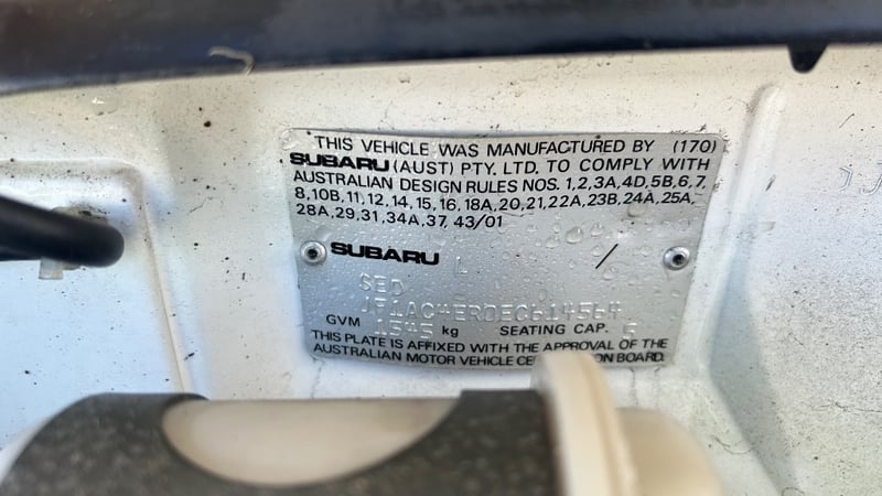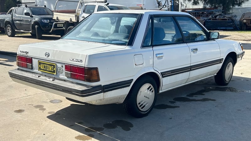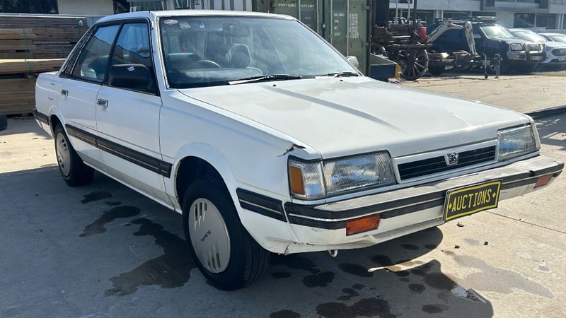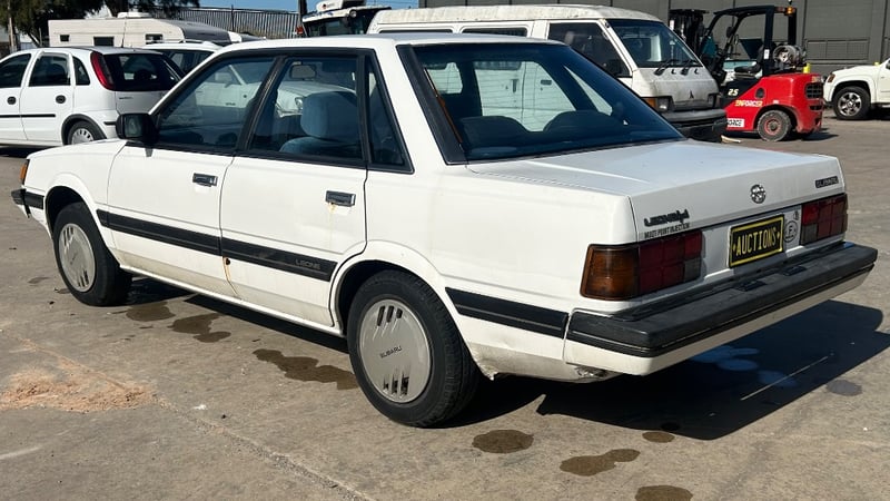 1989 Subaru Leone Year: 1989 Make: Subaru Model: Leone Badge: Royale Body: Sedan Odometer: 133469KM Drive Type: Front Wheel Drive Engine: 1.8L 4 Cylinder Petrol. Transmission: Automatic Colour: White Seats: 5 Description/extras: Air Conditioning, Power Windows, Vehicle Includes Books No Keys. VIN: JF1AC4ER0EC614564 ENG No: 803600 AS PER PPSR Damage: Panel Imperfection Drivers Front Quarter, Front Bar Damage, No Battery, Some Areas Of Rust Evident, Boot Unable To Be Opened. KEYNo: N/A