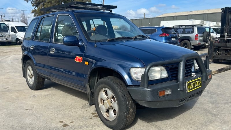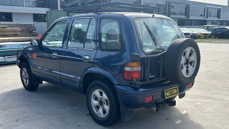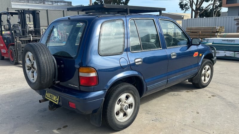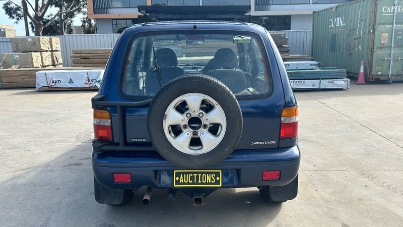 1997 Kia Sportage FM Year: 1997 Make: Kia Model: Sportage Series: FM Badge: N/A Body: 5-Door Wagon Drive Type: Four Wheel Drive Odometer: Indicating 260,925 Kilometers Engine: 2Litre, Inline, 4 Cylinder, Petrol Engine. Transmission: Manual Colour: Blue Seats: 5 Description/extras: No Key, Owners Manual, Air Conditioning, CD Player, AUX/USB, Power Windows, Roof Rack, Bull Bar, Tow Bar. VIN: KNAJA5535V5419383 ENG No: FED756195 AS PER PPSR Damage: Rear Passenger Doors & Rear Door Unable To Be Opened, No Key, Operational Capacity Unknown, Rear Seats Removed, Panel Imperfections Passenger Rear Wheel Arch/Door, Inspection Highly Recommended.